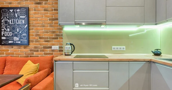 What is the best placement for an air fryer near the stove in a small kitchen?