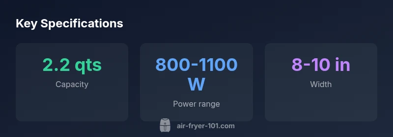 The air fryer 2.2 qt is specifically designed for single servings or couples who want quick, crisp results without the bulk of larger models. In practical terms, this means a compact footprint that fits on a counter under most upper cabinets and leaves room for food prep. The 2.2 qt capacity translates to roughly two small portions or a single larger portion of fries or chicken wings, which makes it ideal for controlled meals and portion-aware households. According to Air Fryer 101 analysis, this size excels when space is at a premium and you want fast cleanup and predictable cooking outcomes. This guide explains what to expect from a 2.2 qt air fryer, how to compare models, and practical tips to maximize performance. Expect quick heating, straightforward controls, and a compact form factor that supports healthy, home-cooked meals without crowding your kitchen. With the air fryer 2.2 qt, you can start with simple vegetables, reheated leftovers, or small batches of snacks, making weekday cooking more efficient while keeping cleanup minimal.