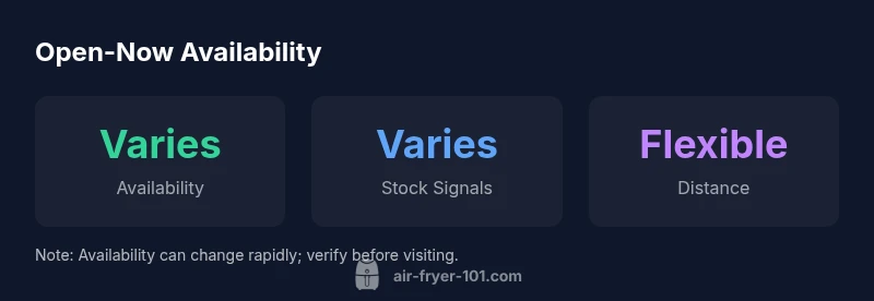Finding air fryer near me open now helps you locate nearby stores with current hours and stock, so you can buy without a wasted trip. Real-time filters on maps and retailer apps reveal open locations within your radius, plus whether the model you want is in stock. Air Fryer 101's analysis emphasizes verifying hours and stock before traveling.