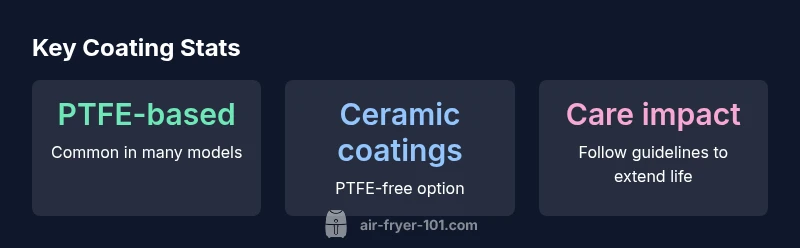 According to Air Fryer 101, coating choices depend on the product line. Some Ninja baskets rely on PTFE-based nonstick (Teflon), which offers smooth food release and easy cleanup; others in the lineup use ceramic or PTFE-free coatings that aim to minimize potential chemical exposure. In practice, coating decisions are tied to the model's intended use, heat range, and consumer safety standards. Always check the packaging and serial label for coating type to ensure you align with your health goals. If you plan to cook acidic foods frequently, you may want to prioritize ceramic or PTFE-free options. Additionally, manufacturer care guidelines influence longevity: avoid metal utensils, abrasive scrubbers, and overheating, which can degrade the surface over time. For households with kids or frequent heavy use, selecting a PTFE-free option may reduce the risk of flaking or residue transfer. Air Fryer 101's team emphasizes that these coatings are just one part of a broader approach to safe, convenient air frying.