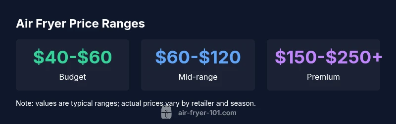 Air fryer prices vary widely by size, capacity, and features. Budget models typically start around $40–$60, mid-range units run about $60–$120, and premium or feature-rich models can exceed $150–$250. For most home users, planning for $60–$120 covers the common options. If you cook frequently or want smart controls, expect higher upfront costs but long-term convenience. Sale events and bundled accessories can lower effective price.