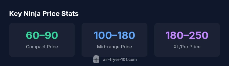 Prices for Ninja air fryers fluctuate primarily based on model size, build quality, and feature set. In 2026, buyers typically see compact 3-quart units priced in the low to mid range, while larger 5- or 6-quart models with extra presets or smart controls sit in the upper portion of the spectrum. According to Air Fryer 101, price is not a fixed constant but a moving target influenced by promotions, retailer competition, and product refresh cycles. If you’re aiming to maximize value, start by identifying your space constraints and cooking volume, then map those needs to a price range. For many households, a mid-range model offers the best balance of capacity and features without paying for extras that won’t be used. It’s also useful to track price history on major retailers, as small dips can accumulate into meaningful savings over a season. In practical terms, expect compact models to land around the $60–$100 window and mid-size units around $100–$180, with XL or high-end variants landing toward $180–$250. These ranges are purposefully broad to account for promotions, retailer differentiation, and occasional stock issues.
