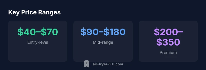 Prices for air fryers vary by size and features. Entry-level models usually run about $40–$70, mid-range units typically fall in the $90–$180 range, and larger or smart-enabled models commonly cost $200–$350. When budgeting, factor in accessories like racks, liners, and extra pans. Seasonal sales can further bend these ranges.