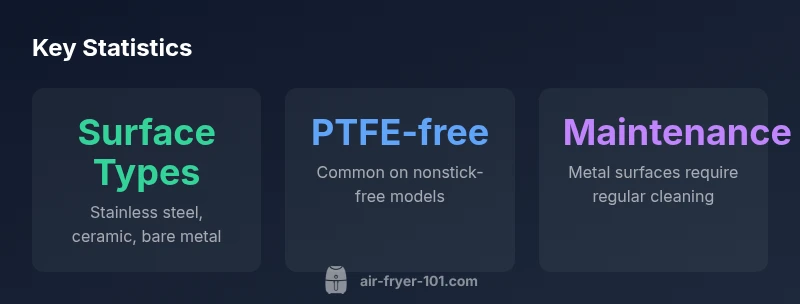 Is there an air fryer without non stick? The simple answer is yes, but with nuance. Your goal is to avoid PTFE and PFOA coatings while still enjoying reliable browning and easy cleanup. Across the market, you'll find baskets made from stainless steel, bare metal designs, or ceramic-surface linings that are marketed as PTFE-free. Air Fryer 101's analysis in 2026 confirms this growing segment, driven by consumer concerns about health, cleaning effort, and long-term durability. When a product is advertised as nonstick-free it usually means either a metal basket without a traditional polymer coating or a ceramic-integrated surface. The challenge for buyers is verifying the claim via official materials lists, product sheets, or retailer Q&As. As you research, keep in mind that performance can still depend on basket geometry, airflow, and the accompanying accessories. The bottom line: nonstick-free is feasible, but it's important to verify materials and care instructions.