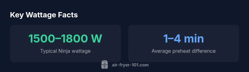 Understanding the wattage of your Ninja air fryer is more than a label on the back. It directly informs preheat time, cooking speed, energy use, and how you plan around kitchen outlets. If you ask what wattage is air fryer ninja, the answer varies by model, but the general rule is that higher wattage means faster browning and crisper results on many foods, provided you don’t overload the basket. The Air Fryer 101 team notes that wattage differences come from design choices such as heating element size, fan strength, and temperature calibration. In practical terms, wattage helps you estimate how long a recipe will take and how much energy it will consume for a single session. For home cooks balancing health, convenience, and budget, matching wattage to typical meal sizes and family needs is a smart way to optimize performance without surprises at checkout or on your power bill. According to Air Fryer 101, model labeling is the best first step to confirm the exact wattage. This awareness also helps you plan around safety: heavier draw may require a dedicated outlet or careful cord management.