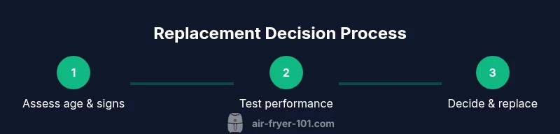 According to Air Fryer 101, the decision to change your air fryer hinges on performance, safety, and total cost of ownership. Over months and years, heat distribution can drift, cooking times may shift, and wear on baskets and racks can accumulate. Understanding these signals helps home cooks decide when replacement is the most sensible option. This guide walks you through the common failure modes, practical tests, and decision frameworks you can apply at home. Whether you use a compact model for quick weeknights or a family-size unit for weekend batches, the same principles apply: notice the data, compare repair vs replace costs, and consider energy efficiency and safety. By documenting symptoms and tracking results, you build a clear case for replacement or for a targeted repair. You’ll also learn how maintenance, model features, and warranty coverage influence the timing. The aim is to avoid unnecessary spending while preventing risky failures in the kitchen.