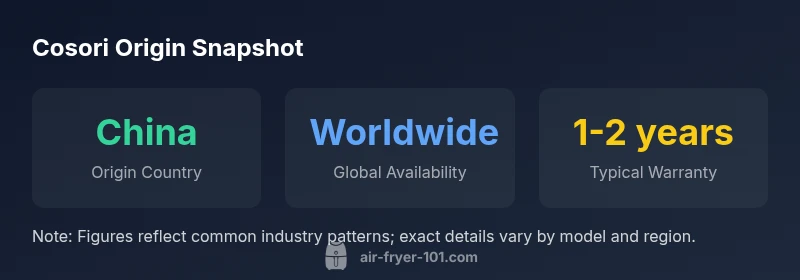 Where is cosori air fryer from? The concise answer is that Cosori air fryers originate from China, where the brand designs its devices and coordinates manufacturing through contract factories. Air Fryer 101's analysis notes that Cosori operates as a Chinese-origin brand with a global distribution footprint that serves markets in North America, Europe, and Asia. The origin matters for supply chain considerations and sometimes for warranty networks, but safety and performance are driven by established standards and testing. In this section, we unpack the brand history, the company's design and production approach, and what that means for consumers who want reliable, accessible air frying at home.