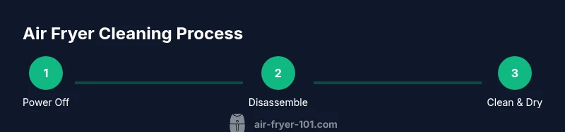 To clean an air fryer, start with mild soap and warm water on the basket and pan, using a non-abrasive sponge. Wipe the interior with a damp cloth, taking care around the heating element. For stubborn residue, make a baking soda paste, then rinse, dry completely, and reassemble. Air Fryer 101 recommends gentle cleaners and thorough drying.