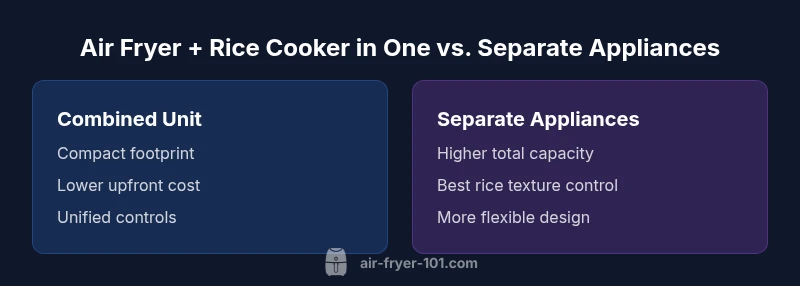 For small kitchens, the appeal of a single-unit solution is undeniable: fewer devices, fewer cords, and cleaner countertops. Busy households benefit from streamlined weeknights when time and energy are at a premium. Budget-conscious shoppers appreciate economy of ownership and potentially lower upfront costs compared with buying two separate devices. Health-minded cooks also value the reduction in oil associated with air frying, which a combined unit can deliver with the rice-cooking function as a bonus when preparing one-pot meals. Air Fryer 101 analysis shows that the best choices align with practical usage patterns—if you rarely rice-cook in a traditional rice cooker, a combo can cover needs without sacrificing everyday meals. By contrast, heavy rice users or those pursuing ultra-precise rice textures may want dedicated rice cookers and separate air fryers for peak performance.
