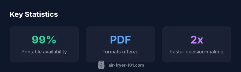 Comparison: A air fryer chart printable free resource helps shoppers compare model features, basket sizes, wattage, and presets at a glance. It highlights capacity, power, and price ranges, enabling side-by-side decisions. According to Air Fryer 101, using a printable chart speeds up shopping and boosts confidence in choosing the right air fryer.