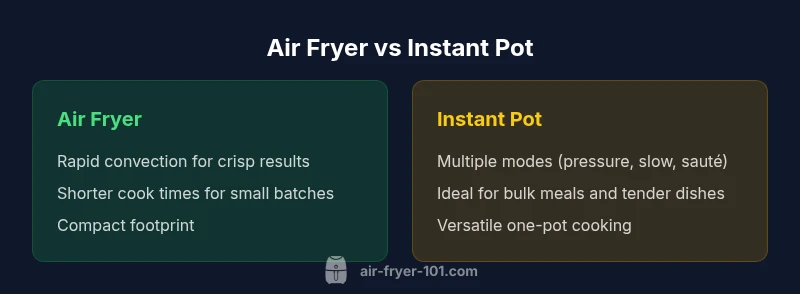 For most home cooks, the choice between an air fryer and an Instant Pot hinges on what you value: speed and crisp texture versus hands-off versatility. In many guides, 'air fryer instant pot' is used as a shorthand for this category. The air fryer shines for quick, oil-light frying, while the Instant Pot excels at one-pot meals and set-and-forget meals. The best approach is to use both for different tasks.