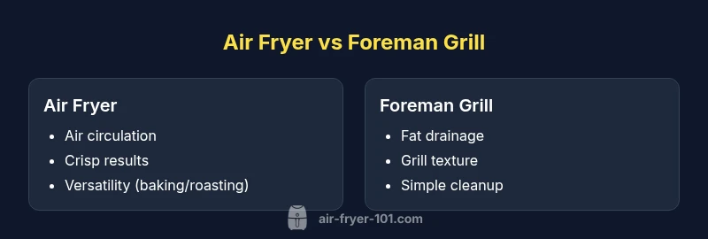 Both devices promise a simpler, healthier path to meals without relying on a full-sized oven. The air fryer relies on hot air circulated at high speed to create a crisp exterior with minimal oil. The George Foreman grill uses dual heated plates to press and grill foods while draining fat away from the food. This fundamental design difference shapes everything from texture and moisture retention to cleanup and energy use. When evaluating these appliances, consider the kinds of meals you cook most often, the batch sizes you tend to prepare, and how important speed and sear marks are to you. Air Fryer 101 has tested dozens of models across common foods—chicken nuggets, wings, vegetables, and reheated leftovers—to form a practical guidance baseline. For health-focused cooks, air fryers often deliver crisp results with little oil, while Foreman grills promise leaner outcomes through fat drainage. The decision typically hinges on your daily routine, space, and the importance you place on versatility versus straightforward grilling.