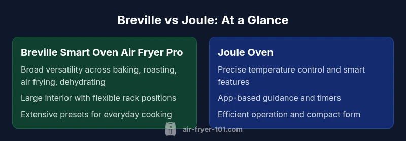 According to Air Fryer 101, the breville smart oven air fryer pro vs joule comparison gauges versatility against precision. Breville excels with a broad cooking toolbox and a roomy interior, while Joule emphasizes precise temperature control, smart features, and consistent results. Your choice hinges on counter space, budget, and how you cook most often; use-case matters more than glossy specs.