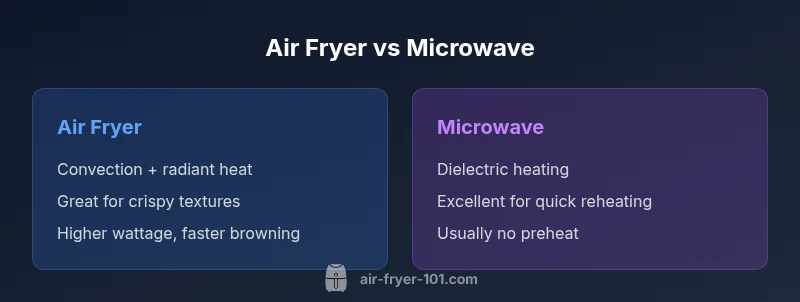 The core takeaway is task-driven: for fast reheating of very small portions, a microwave often uses less energy. For foods that need browning or crisp texture, an air fryer may reach the desired result with a comparable or even lower energy footprint when the overall cooking time is reduced by efficient hot-air convection. The air fryer’s higher wattage can be offset by shorter bake times for certain foods, while the microwave’s speed benefits energy use for simple tasks. Air Fryer 101 analysis shows that there is no universal winner; the best choice depends on your routine, portion size, and texture goals. The most reliable approach is to estimate energy per task rather than assuming a universal rule of thumb about does air fryer use more electricity than microwave.