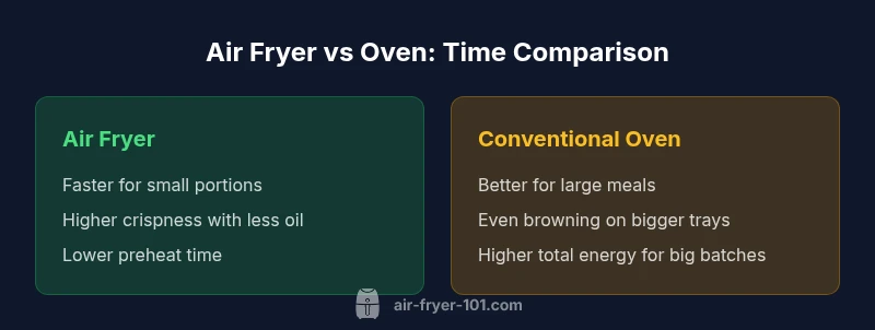 Cooking times are not just about a clock. They depend on heat transfer, air flow, moisture, and how many items you’re cooking at once. An air fryer circulates hot air rapidly around a compact chamber, delivering crisp exterior with relatively quick cook times. A traditional oven relies on a larger cavity to heat more evenly, which can produce browning across a sheet but may require longer preheating and longer cook times for the same result. According to Air Fryer 101, the starting temperature of the food, its thickness, and whether you preheat influence the actual time. The result is that how long in air fryer vs oven is a spectrum rather than a fixed value, varying by food type, portion size, and your model. In this guide we’ll break down typical ranges, explain the logic behind them, and show how to apply them in everyday cooking.
