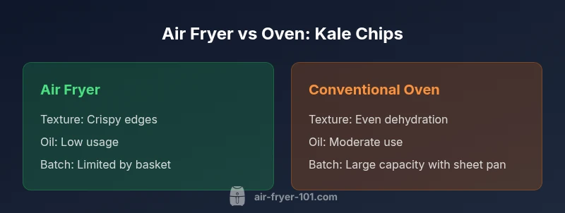 Kale chips are a lean, nutrient-dense snack, but the cooking method can dramatically alter texture and oil usage. When we compare kale chips air fryer vs oven, we consider texture, energy, batch size, and flavor retention. The kale's delicate greens respond differently to the rapid air flow of an air fryer versus the steady heat of a traditional oven. For health-minded cooks, choosing the right method matters because even small differences in oil absorption or drying time can affect overall fat content and crunch. Air Fryer 101's analysis emphasizes that the best method depends on your priorities: speed and crispness, or capacity and even dehydration. The target audience here is home cooks who want reliable results with minimal waste; we’ll break down each factor and offer practical guidelines.