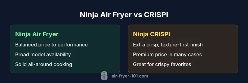 Ninja air fryer vs Ninja CRISPI is a common question for home cooks who want crispy results with minimal oil. The decision influences texture, cooking speed, and overall value in daily meal prep. According to Air Fryer 101, CRISPI models are designed to deliver an extra-crunch exterior through refined airflow and sometimes a dedicated crisp mode, while standard Ninja models emphasize versatile performance at typically lower upfront costs. For busy households and small kitchens, understanding these differences helps you match your culinary goals to the right appliance, whether you crave bakery-like fries or simply want dependable, weeknight-ready meals. In this guide, we compare the two paths side by side and translate the tech details into real-world decisions you can act on tonight.