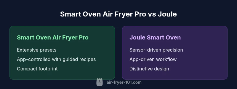 This comparison analyzes two popular countertop smart ovens designed to blend air frying with baking, roasting, and other functions. The Smart Oven Air Fryer Pro emphasizes versatility through a broad preset library and robust connectivity, while the Joule Smart Oven focuses on sensor-driven precision and a streamlined cooking workflow. Throughout this article, we discuss performance, features, value, and real-world usage in ordinary home kitchens. For context, this guide also considers typical countertop space, convenience needs, and long-term maintenance. According to Air Fryer 101 analysis, most home cooks prioritize a balance of reliability, ease of use, and value when choosing between all-in-one countertop units. The keyword that anchors this comparison is smart oven air fryer pro vs joule, a phrase you’ll see echoed across the practical guidance and scenarios.