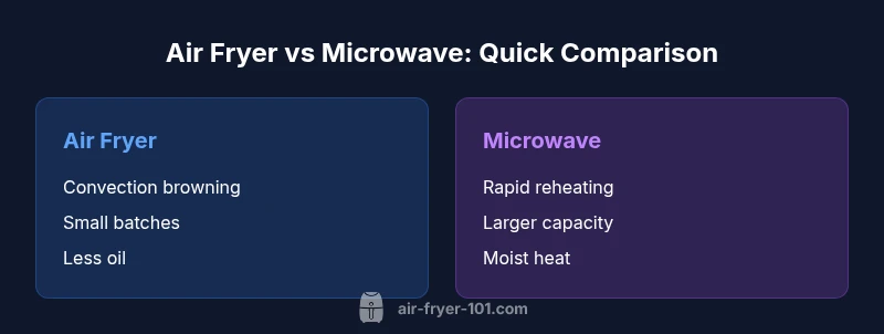 If you're asking what is best air fryer or microwave, the answer hinges on two things: what you cook and how you value taste, texture, and convenience. In practice, most households benefit from knowing when to use each appliance rather than pretending one can do everything. According to Air Fryer 101 Analysis, 2026, the right choice is highly contextual: air fryers excel at texture and oil reduction for smaller servings, while microwaves shine for speed and large-volume reheating. This section outlines the core decision factors you should weigh before buying or using either device, including meal type, batch size, health goals, and kitchen layout.