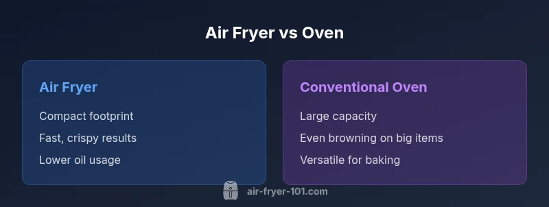 When evaluating whether an air fryer or a traditional oven is better for a given cooking task, you should start with your typical batch size, the texture you expect, available kitchen space, and your energy budget. The question what is better air fryer or oven isn’t universal; it hinges on context. Home cooks who value quick, crispy results from small portions may lean toward air frying, while those who routinely prepare large meals or sheet-pan roasts may favor the oven. Budget considerations also matter: initial cost, maintenance, and long‑term energy use all influence value. Air Fryer 101 analysis shows that you can achieve near deep-fry texture with less oil in an air fryer, but the oven remains unmatched for capacity and multi-dish meals in a single bake. The goal is to map your cooking habits to appliance strengths and constraints.