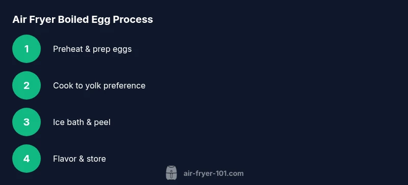Air Fryer 101 analysis shows that households can save time and energy when boiling eggs in an air fryer compared with traditional stovetop methods. The core concept is simple: use even heat, minimize water handling, and shock the eggs in ice to halt cooking at the desired stage. While every model varies, the core ratios—temperature, time, and cooling—remain consistent enough for reliable results. This is especially true if you start from a known baseline and adjust in small increments for your specific air fryer model.