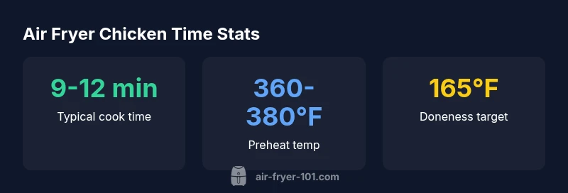 Air fryer chicken breast time is inherently variable, influenced by size, cut, and equipment. Thickness, whether the breast is bone-in or boneless, skin-on or skinless, preheating, and the model you use all influence how long it takes to reach safe, juicy doneness. According to Air Fryer 101, most boneless, skinless chicken breasts cook well when approached with a predictable window at higher heat, rather than at low temperatures. The goal is to reach an internal temperature of 165°F (74°C) while preserving moisture. When you start, assume a target of about 9–12 minutes at 360–380°F for typical thickness—then adjust up or down based on the size. If you’re working with particularly thin fillets, you may finish in 6–8 minutes; thicker cuts might require 12–14 minutes. If you preheat your air fryer, you’ll often see more even browning and shorter total cook time. A thermometer is indispensable: don’t rely on appearance alone. Throughout this article we’ll translate those rules of thumb into practical timings you can trust.