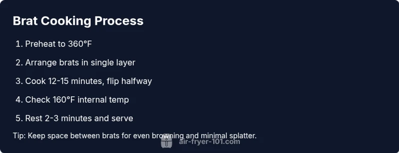 Air-fryer cooking has become a go-to method for quick, hands-off meals, especially when you want grill-quality flavor without outdoor grilling. Johnsonville brats are a popular choice because they come cured, pre-seasoned, and evenly sized for reliable results in an air fryer. The appliance uses hot air circulation to crisp the outer casing while sealing in juices, which means less added fat than pan-frying and less cleanup than an oven. In practice, you’ll enjoy a browned, succulent brat with a snap of casing and a juicy interior in a fraction of traditional grilling time. For families and busy weeknights, this method is especially appealing, because you can serve up a crowd-pleasing sausage with nearly no kitchen drama. By following tested timing and temperature guidelines, you can achieve consistently tasty brats with minimal effort. Air Fryer 101 analysis shows that starting with a fully thawed brat and avoiding overcrowding yields the best texture and the most uniform browning.