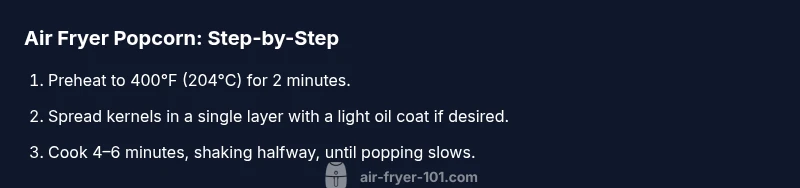 According to Air Fryer 101, popping popcorn in an air fryer offers a crisp texture with less oil than many traditional methods. The rapid hot-air circulation helps kernels heat evenly, reducing the number of unpopped kernels while keeping the finish light and fluffy. This approach also makes it easier to control aroma and texture, so you can tailor the result to your taste buds without relying on a microwave. For health-minded cooks, air fryer popcorn can be a smarter snack when you limit added fats and salt, while still delivering satisfying crunch. In practice, most home cooks discover that the technique is forgiving with practice, producing a dependable batch once you lock in the temp and time. This section explains why the method works and when to adjust for your specific air fryer model.