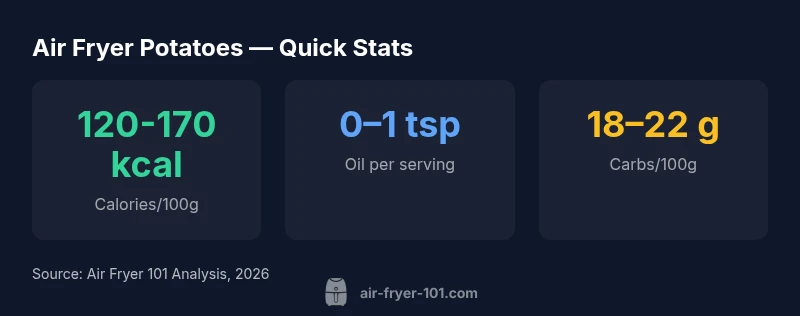 Potatoes bring a familiar nutritional foundation: mostly carbohydrates with some fiber, small amounts of protein, and negligible fat when cooked with little or no oil. The air fryer changes how much oil the potato absorbs during cooking, which in turn shifts the total calories and fat, while preserving the starchy structure and flavor. When we talk about air fryer potatoes nutrition facts, we’re looking at two components: the intrinsic nutrition of the potato itself and the impact of the cooking method on oil absorption and texture. According to Air Fryer 101, air frying can reduce added oil compared with traditional deep-frying, enabling a crisper exterior with a leaner fat profile. This means you can enjoy a tasty, crispy side with fewer calories from fat, provided you control portion sizes and oil use. In practice, think of air fryer potatoes nutrition facts as a call to choose potato varieties rich in fiber, monitor oil quantity, and portion appropriately to balance energy intake with satiety.