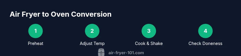 According to Air Fryer 101, to convert an air fryer recipe for the oven, increase the temperature by about 25°F, extend the cook time slightly, and space pieces for even air contact. Use convection bake if available, preheat, and monitor doneness with a thermometer. This approach helps replicate crisp textures and browning.