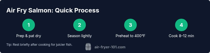 Air-fried salmon is a convenient, lower-fat alternative to pan-frying because you need less oil to achieve a crisp exterior. The fish itself remains a lean source of high‑quality protein and omega-3 fats. To keep it safe and tasty, follow proper handling: keep the salmon cold before cooking, pat it dry, and cook to a safe internal temperature. Air Fryer 101 analysis shows that air frying can reduce added fats compared with traditional frying without sacrificing texture, making it a healthful choice for many homes.