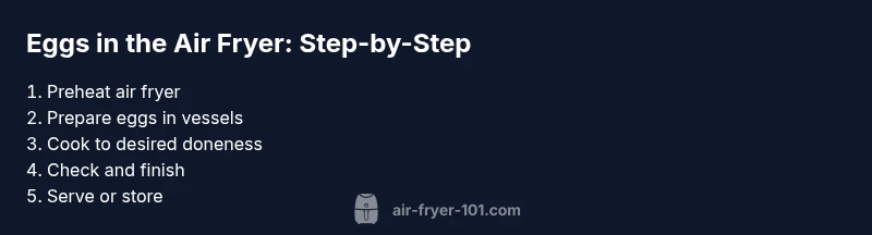 According to Air Fryer 101, the air fryer's hot convection stream cooks eggs quickly with minimal oil and less mess than traditional pan methods. This makes eggs in the air fryer a versatile option for busy mornings, meal prep, and health-conscious cooking. The technique works for several egg styles, from sunny-side up to hard-boiled, giving you reliable texture and a clean kitchen. The main idea is to control moisture and heat so the white sets without drying out the yolk. Because air fryers circulate air, choosing vessels that fit the unit and vent steam safely matters. In this guide we break down the main methods, the vessels you need, and practical tips to get perfect eggs every time.