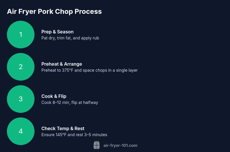 The air fryer is a reliable tool for turning ordinary pork chops into a crave-worthy weeknight centerpiece with less oil than traditional pan frying. The convection action creates a crisp, browned crust while the interior remains tender when you control moisture and timing. According to Air Fryer 101, this method balances texture, health benefits, and convenience for home cooks who want consistent results without monitoring a pan for long. With minimal cleanup and fast cooking cycles, air frying pork chops is a practical choice for busy families and anyone looking to simplify weeknight protein.