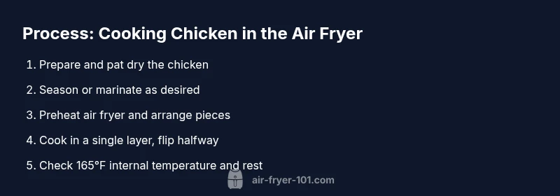 Air fryers have become a staple in modern kitchens because they deliver a crisp exterior with less oil than traditional frying. When you cook chicken in the air fryer, you can achieve a satisfying texture without deep-frying, and you’re less likely to end up with greasy leftovers. This guide uses the keyword cooking chicken air fryer naturally, and throughout the article you’ll see how lean cuts, skin-on or skinless options, and different marinades influence finish and flavor. According to Air Fryer 101, the most reliable results come from starting with dry surface moisture, using a light coating of oil, and not overcrowding the basket. These practices help the hot air circulate evenly for uniform browning and juicy interiors.