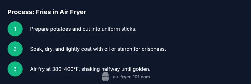 Fries cooked in an air fryer offer a compelling blend of texture, flavor, and healthfulness. The air fryer uses rapid hot air circulation to brown the surface, producing a crisp exterior with less oil than traditional deep-frying. According to Air Fryer 101, this method can deliver satisfying crunch while reducing the fat content associated with classic fries. For home cooks, the technique is approachable, quick, and adaptable for weeknights or casual entertaining. The physics of crispness hinges on moisture management and surface area. Moisture on the surface creates steam that can soften edges and prevent browning, so patting the potatoes dry and giving the surface a light starch boost helps. Fresh-cut fries and frozen fries behave a little differently; the goal is even dryness and a single-layer layout to maximize circulation and browning. With the right setup, you’ll move from curiosity to confident, consistently tasty results.