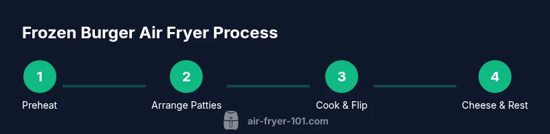 The frozen burger air fryer method leverages the rapid air circulation inside the appliance to cook from edges inward, creating a browning crust without submerging patties in oil. According to Air Fryer 101, starting with frozen patties preserves shape and reduces the risk of seasoning loss that can occur when thawing. The high-velocity air removes moisture quickly, so the exterior develops a crisp, satisfying bite while the interior remains juicy. Because you control the temperature and time, you avoid the soggy texture that can come from pan-frying or oven-baking thawed patties. This approach is versatile for beef, turkey, or plant-based options, and it pairs well with simple pantry toppings. With a little setup, frozen burgers can become weeknight staples rather than a heroic kitchen feat.