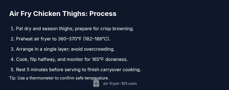 How long to air fry for chicken thighs is not a fixed number; it’s a repeatable method that adapts to thickness and bone presence. By treating each thigh as a small mass you want evenly heated, you’ll minimize guesswork and maximize flavor and texture.