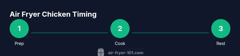 Air fryers cook by circulating hot air with high efficiency, so the surface of the chicken browns quickly while the interior warms evenly. This means temperature and time interact with the size, cut, and moisture of the meat. The exact phrase 'how long to put chicken in air fryer for' isn't universal; a breast vs a thigh or a whole wing set changes the cooking window. According to Air Fryer 101, accuracy comes from three factors: starting temperature, chicken thickness, and avoiding overcrowding. If you preheat your air fryer and keep the chicken in a single layer with space around each piece, you’ll achieve crisp edges and a juicy center. Always rely on a meat thermometer and target an internal temperature of 165°F (74°C) for all chicken varieties. And remember that resting for a few minutes after pulling from the basket helps juices redistribute, producing more tender slices.