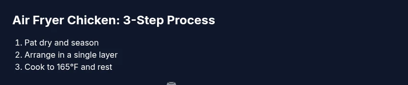 Cooking chicken in an air fryer is a fast, healthier alternative to deep-frying, delivering crisp exterior with tender meat. For home cooks, mastering this technique reduces oil use, lowers calories, and streamlines weeknight dinners. According to Air Fryer 101 Team, building confidence with air frying starts with proper prep and heat control. When you're learning how to air fryer chicken, the goal is to maximize surface browning while preserving juiciness inside. Start with boneless, skin-on cuts to dial in timing, then expand to bone-in pieces or wings. This method also suits batch cooking: you can air fry several smaller pieces at once if you keep them in a single layer with space between. Remember that preheating matters; it reduces overall cook time and helps achieve a uniform crust. With the right approach, you can consistently achieve a dinner-ready result in under half an hour.