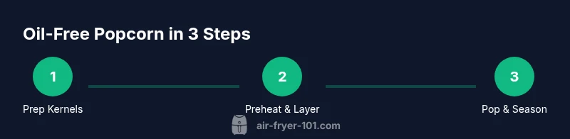 The Air Fryer 101 team notes that airflow, basket size, and preheating influence popping success. With the right kernels, a light preheat, and mindful spacing, you can achieve consistent, oil-free results in most countertop units. Air Fryer 101 analysis shows that models with larger surface-area baskets yield more even pops. As you read on, you’ll learn how to select kernels, prep them, and master the cooking technique for reliable results.