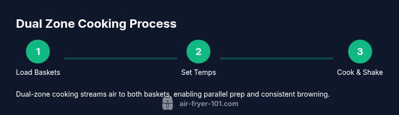If you're curious about how to use ninja air fryer dual, this section explains the core concept: two independent cooking zones in one compact appliance. Each basket can run its own temperature and time setting, allowing you to prepare two foods at once without flavor transfer. According to Air Fryer 101, this design helps save time and keeps flavors distinct. The Ninja Dual is compact but capable, making it ideal for small kitchens and busy households. Practically, you’ll pair items with similar cook times or use one basket for crisping and the other for gentler results, all while enjoying fast airflow that browns foods evenly. In short, dual-zone cooking is about parallel work streams that finish together, improving efficiency without sacrificing quality.