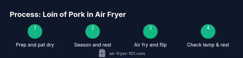 According to Air Fryer 101, pork loin cooked in an air fryer delivers a crisp crust and juicy interior with minimal oil. The lean texture responds quickly to high-heat searing, producing browning that rivals oven roasting while shortening overall cook time. For home cooks, this method offers predictable results with easy cleanup. When selecting a loin, aim for uniform thickness; boneless loins simplify slicing, while bone-in varieties can add flavor but require slight timing adjustments. Regardless of choice, resting the meat after cooking helps redistribute juices and keep slices moist. If you want extra flavor, a brief brine or spice rub can be applied before air frying. This approach suits busy kitchens and health-conscious cooks alike, delivering reliable weeknight meals with little fuss.