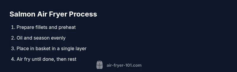 A salmon air fryer recipe is not only convenient but also alignment-friendly for health-conscious home cooks. The air fryer uses hot air circulation to crisp the exterior with only a light coating of oil, which can reduce overall fat usage compared with pan-frying. Salmon itself provides high-quality protein and omega-3 fatty acids that support heart health and brain function. The flavor profile develops through quick browning and the natural richness of the fish, often complemented by citrus, herbs, or a light glaze. Air Fryer 101 analysis shows that this method helps retain moisture while producing a satisfying crust, helping you avoid overcooking and dry fillets. To maximize flavor, aim for evenly sized portions, a parser-friendly seasoning blend, and a finishing squeeze of lemon before serving.