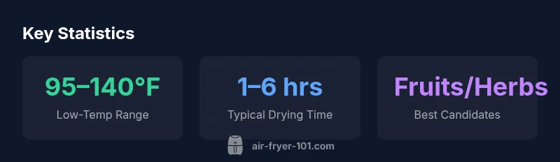 According to Air Fryer 101, the idea of using an air fryer as a dehydrator is feasible for many models, especially when you set the unit to low temperatures and arrange foods on racks to maximize airflow. This approach leverages the same convection principles that drive drying in traditional dehydrators, but with the compact footprint of a typical countertop unit. Begin with a small test batch to observe how evenly moisture is removed and how surface texture develops. The takeaway is that dehydration in an air fryer is a practical option for quick, small-batch snacks, especially when a dedicated dehydrator isn’t available. The Air Fryer 101 Team emphasizes that success hinges on temperature control, airflow, and careful monitoring during the process.