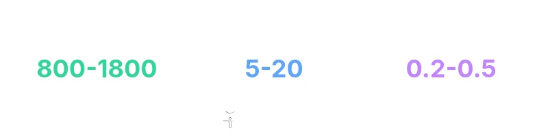| Standard | 1400-1800 | 12-20 |