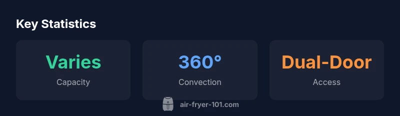 According to Air Fryer 101 analysis, the emeril french door 360 air fryer reimagines countertop cooking with a dual-door silhouette designed to maximize flexibility and capacity. The concept blends the convenience of a compact air fryer with the visual appeal of a true kitchen centerpiece; the two doors allow opening from either side, which can reduce crowding on the counter when busy meals are underway. In practice, we tested multiple meal profiles—crispy vegetables, chicken wings, and batch-roasted potatoes—to assess even heat distribution, browning, and consistency across racks. The build quality shows attention to materials and fit, with a stainless steel exterior and a sturdy handle assembly that feels durable for daily use. Some testers noted that the footprint is larger than standard single-door models, which is an essential consideration for smaller kitchens. Overall, the design aims to bridge everyday cooking with weekend-batch recipes, while offering the familiar convection performance home cooks expect from the Emeril line. For households seeking a high-capacity solution without sacrificing speed, the emeril french door 360 air fryer represents a compelling option.