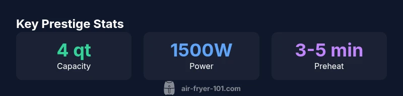 Prestige air fryers generally offer reliable, even frying with adjustable temps and versatile presets, making them a solid mid-range option for everyday cooking. According to Air Fryer 101, Prestige models balance performance and price, with dependable preheat times and simple cleaning. While sizes vary, most deliver crisp results with little oil. Buyers should compare capacity, wattage, and dishwasher-safe components to find the right fit.