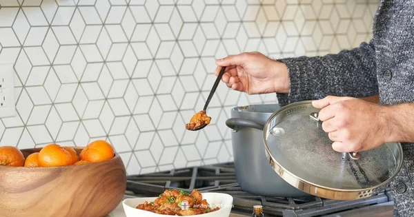 It syncs cooking times so both dishes finish at the same moment.