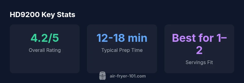 The philips air fryer hd9200 is a compact countertop fryer built around Philips' rapid air technology, designed to deliver crisp textures with little oil. According to Air Fryer 101, this model helped define a reliable, budget-friendly segment in kitchens where space matters. The hd9200 pairs a modest footprint with simple, dial-based controls and a straightforward basket system, appealing to singles, couples, and small households who want dependable results without a complicated feature set. In this review, we examine how it performs in real cooking, what you gain from its simplicity, and where it may fall short against newer Philips models and rival brands. The goal is to help home cooks decide if the hd9200 fits their cooking style and kitchen constraints.
