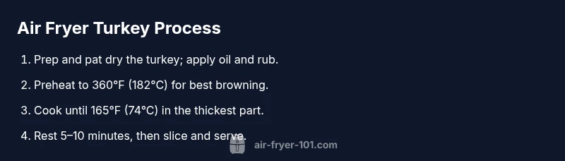- Pat dry the thawed turkey and apply a light coat of oil. This helps browning and keeps spices adhered. 2) Apply the rub evenly, including under the skin if possible, to maximize flavor. 3) Preheat the air fryer to 360°F (182°C) if your model requires preheating. 4) Place the turkey in the basket in a single layer without crowding. 5) Cook, flipping halfway through, until the interior reaches 165°F (74°C). 6) Remove and let rest for 5–10 minutes before slicing. 7) Slice against the grain and serve with pan juices or sides. 8) Store any leftovers in the refrigerator within two hours of cooking.